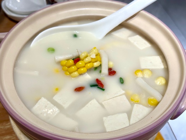 杏仁腐, 肉片汤和锅贴