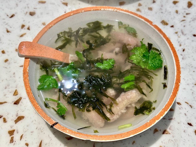 杏仁腐, 肉片汤和锅贴